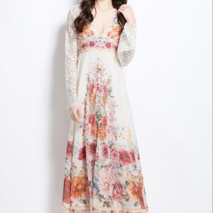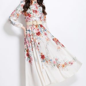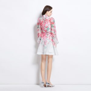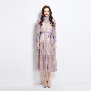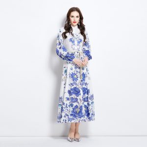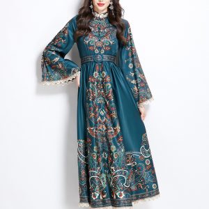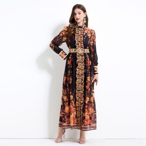 Spring and summer retro cstand collar printing national style dress