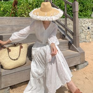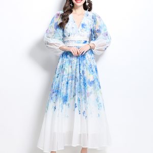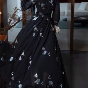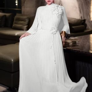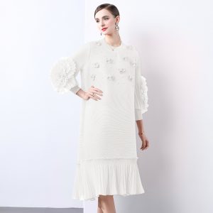 Stereoscopic flowers show young dress pure pleated long dress