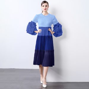 Lotus leaf edges long sleeve court style long dress 2pcs set