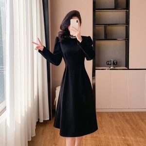 Long single-breasted elegant temperament European style dress