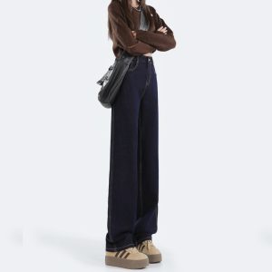 Autumn mopping pants wide leg navy-blue jeans for women
