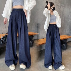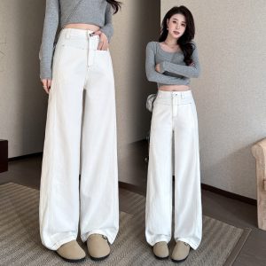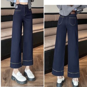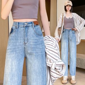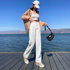 Straight Korean style pants high waist jeans for women
