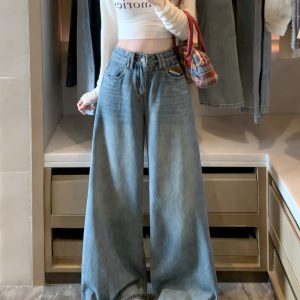 Straight pants American style wide leg mopping jeans