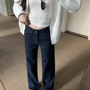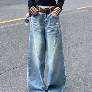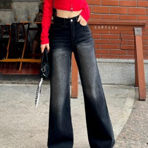 Loose straight jeans retro wide leg pants for women
