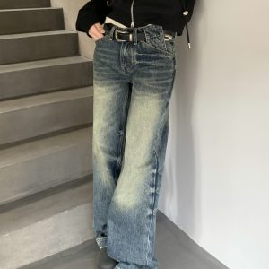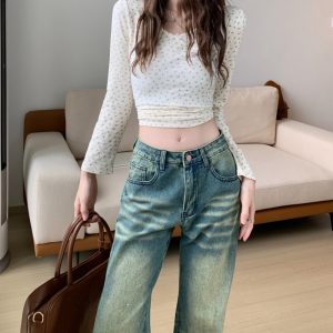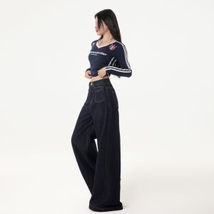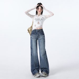 Micro speaker jeans loose wide leg pants for women
