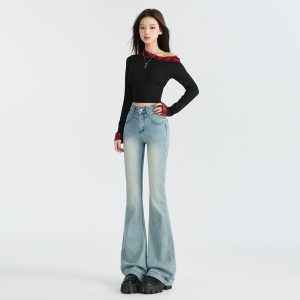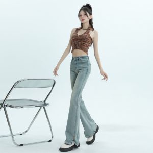 Micro speaker flare pants high waist jeans for women