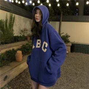 Round neck autumn and winter mixed colors plus velvet hoodie
