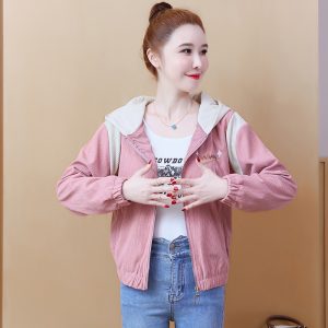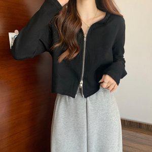 Autumn and winter student hooded retro tops short loose zip coat