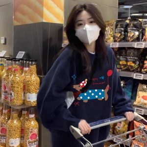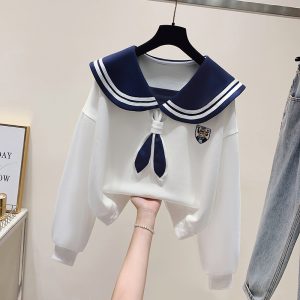 Autumn college style tops loose hoodie for women