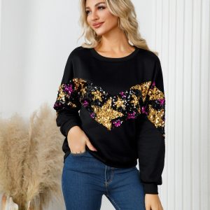 Autumn and winter long sleeve tops round neck ornament hoodie