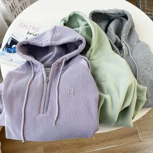 Autumn loose coat embroidery half zip hoodie for women