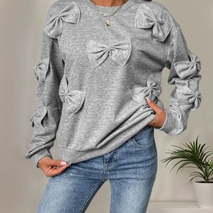 European style splice round neck bow gray hoodie