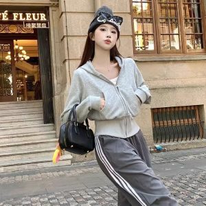 Korean style high waist tops spring hoodie for women