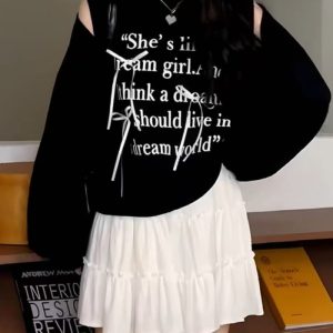 Korean style lazy hollow tops letters autumn hoodie for women