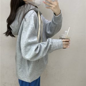 Loose all-match hoodie plus velvet student coat for women