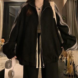 Loose stripe cardigan spring American style hoodie