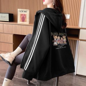 Loose spring and autumn coat hooded hoodie for women