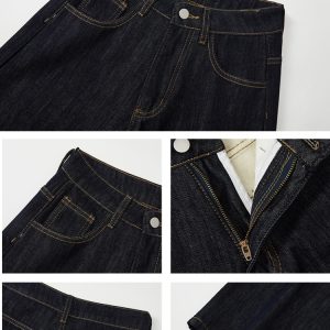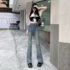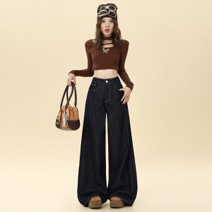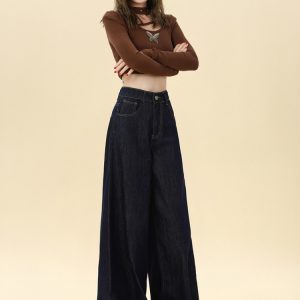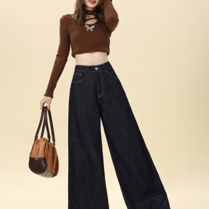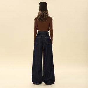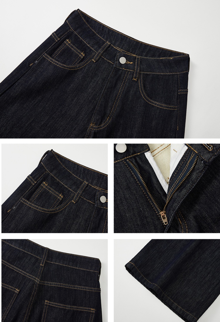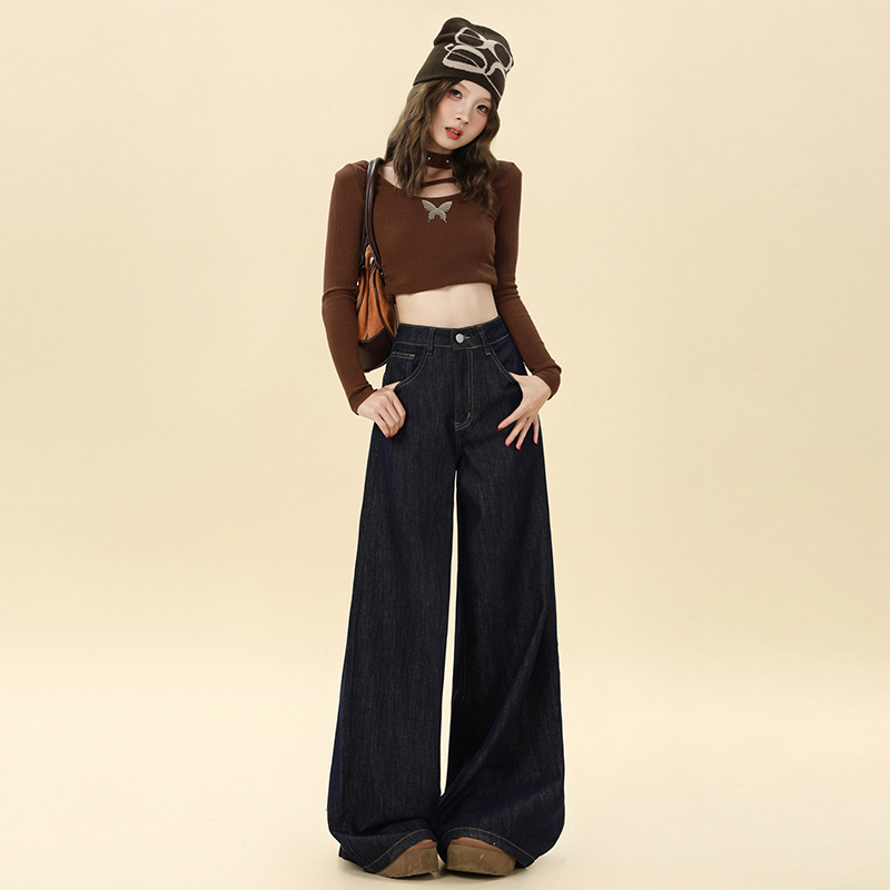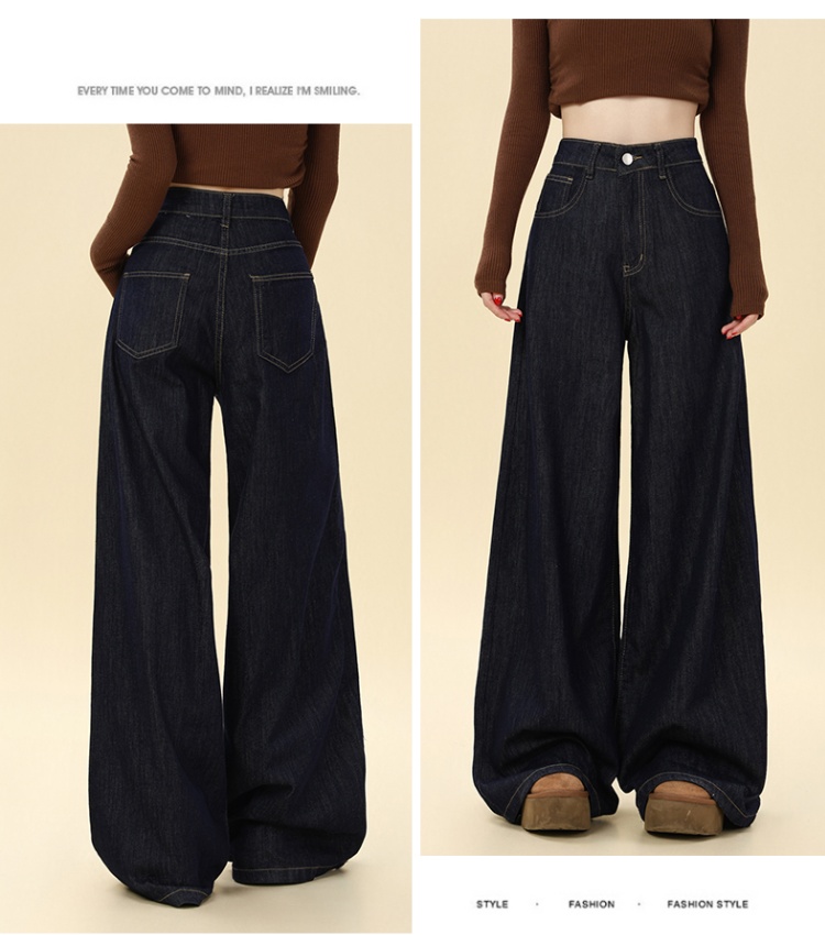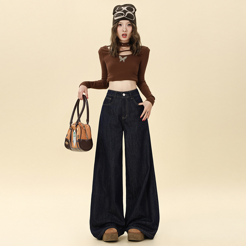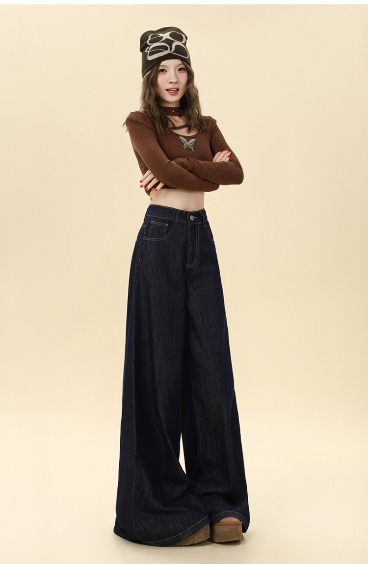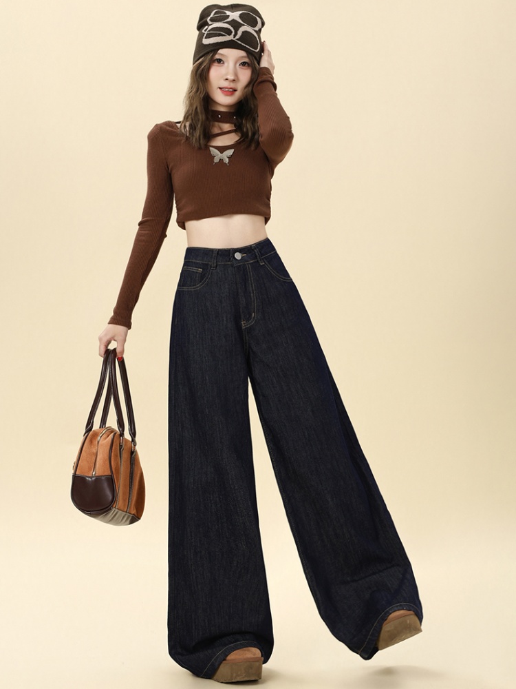 Autumn mopping pants wide leg navy-blue jeans for women