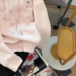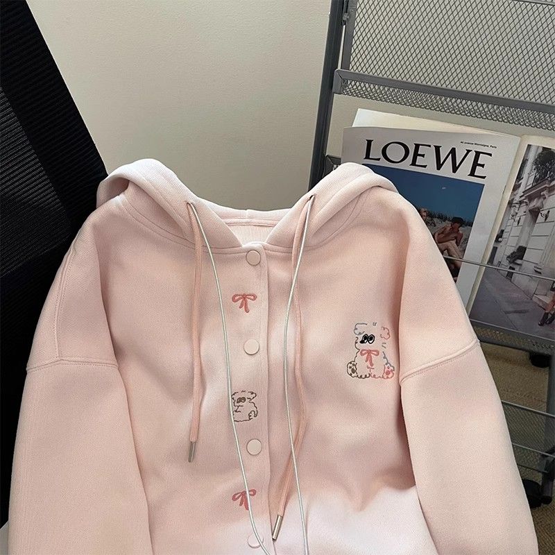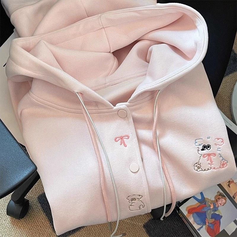 Autumn pink coat hooded Korean style tops for women
