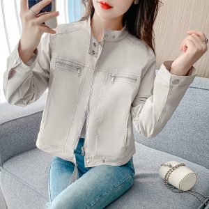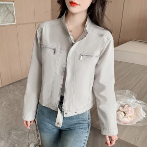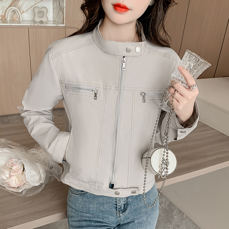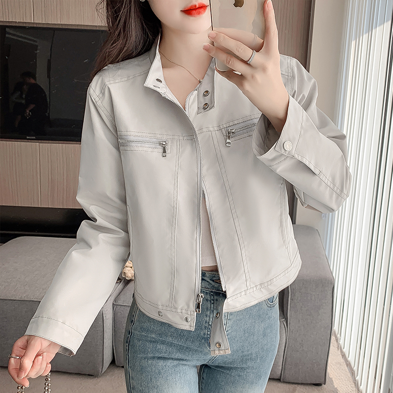 Casual spring work clothing cstand collar short coat for women