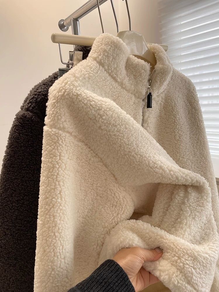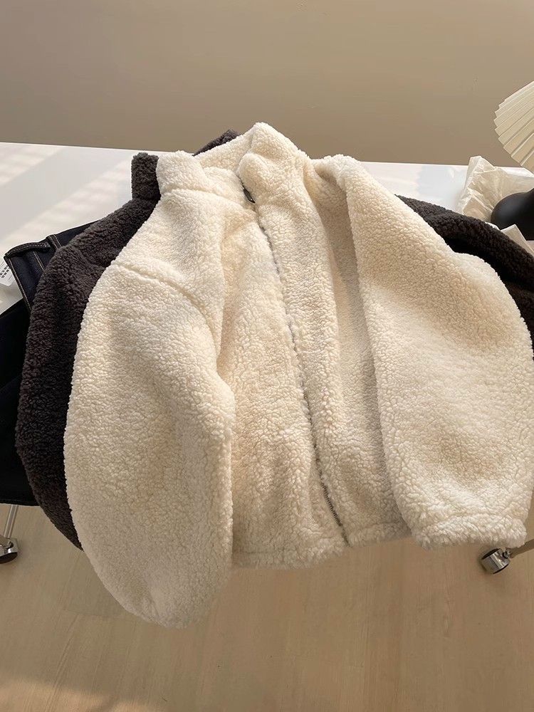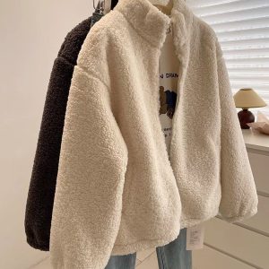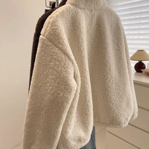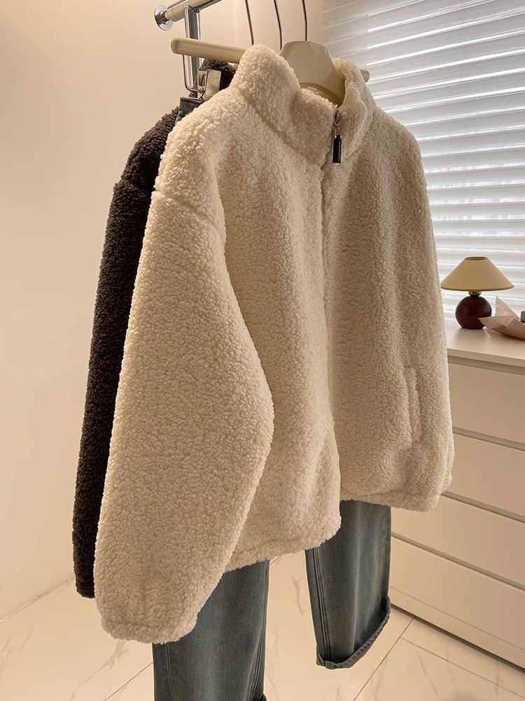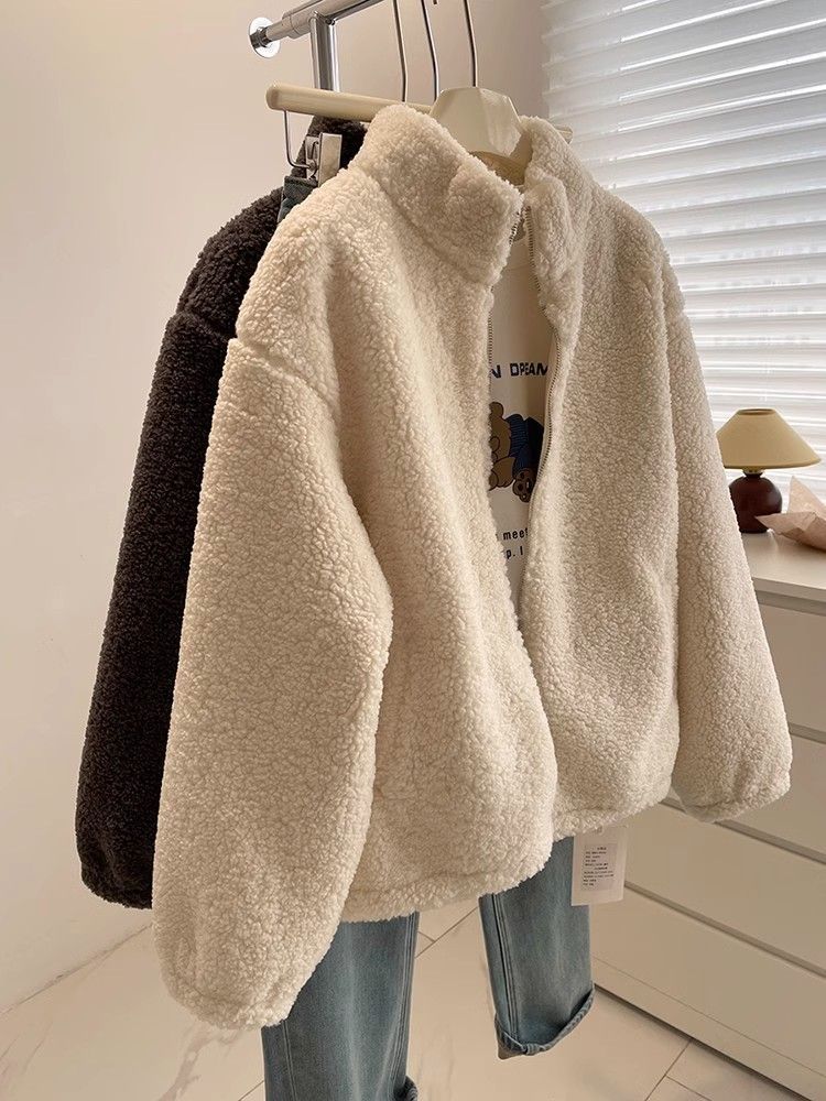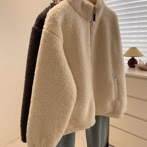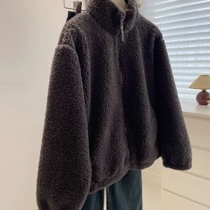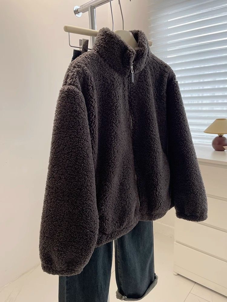Cstand collar Casual thick jacket elmo zip coat for women