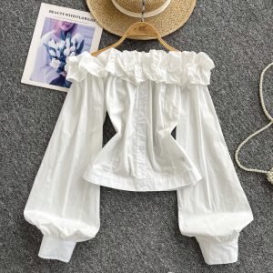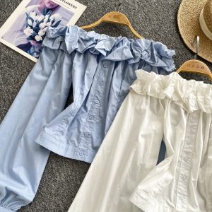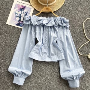 Flat shoulder breasted shirt niche strapless tops for women