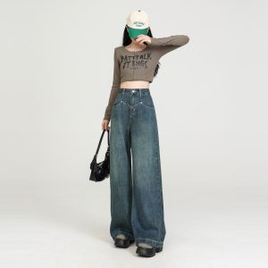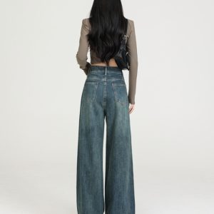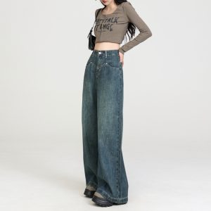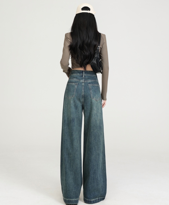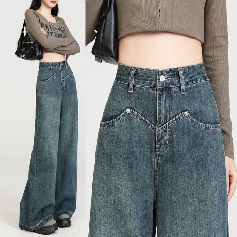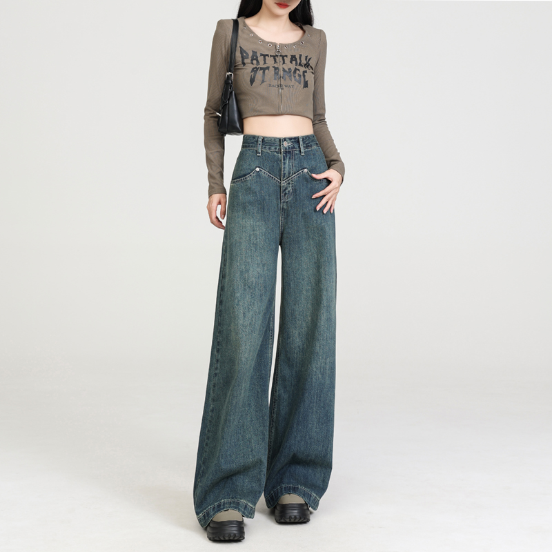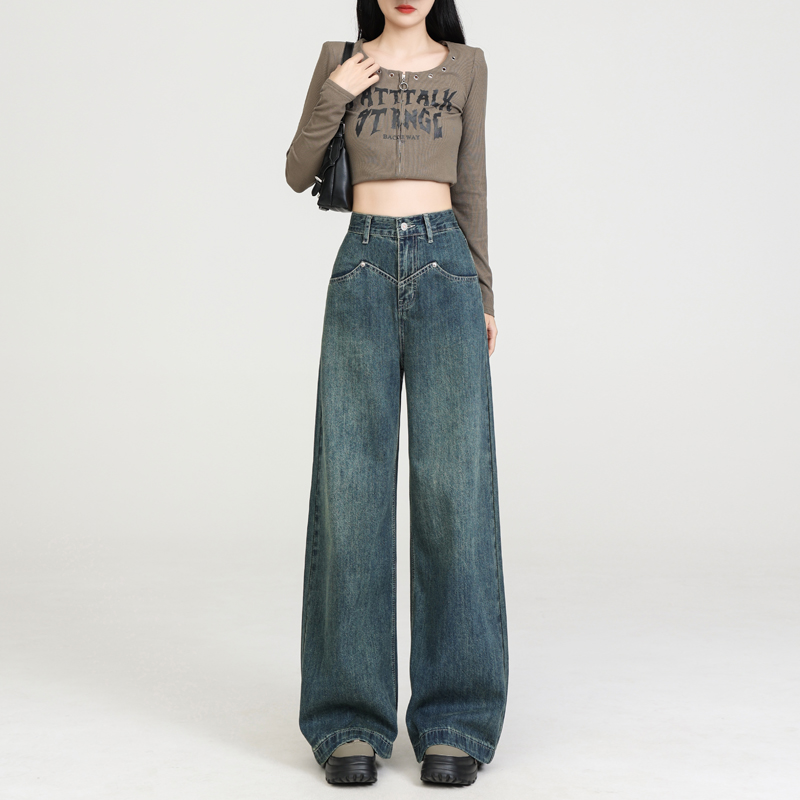 High waist spring drape jeans retro loose long pants