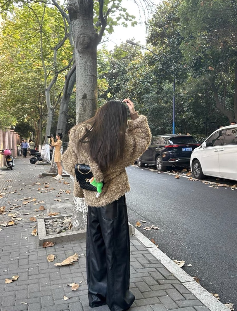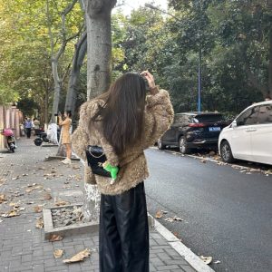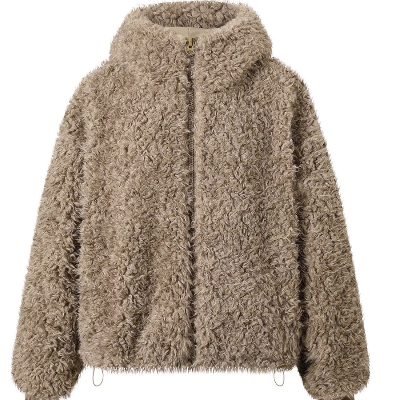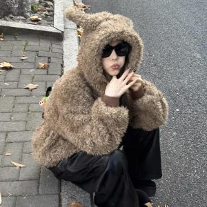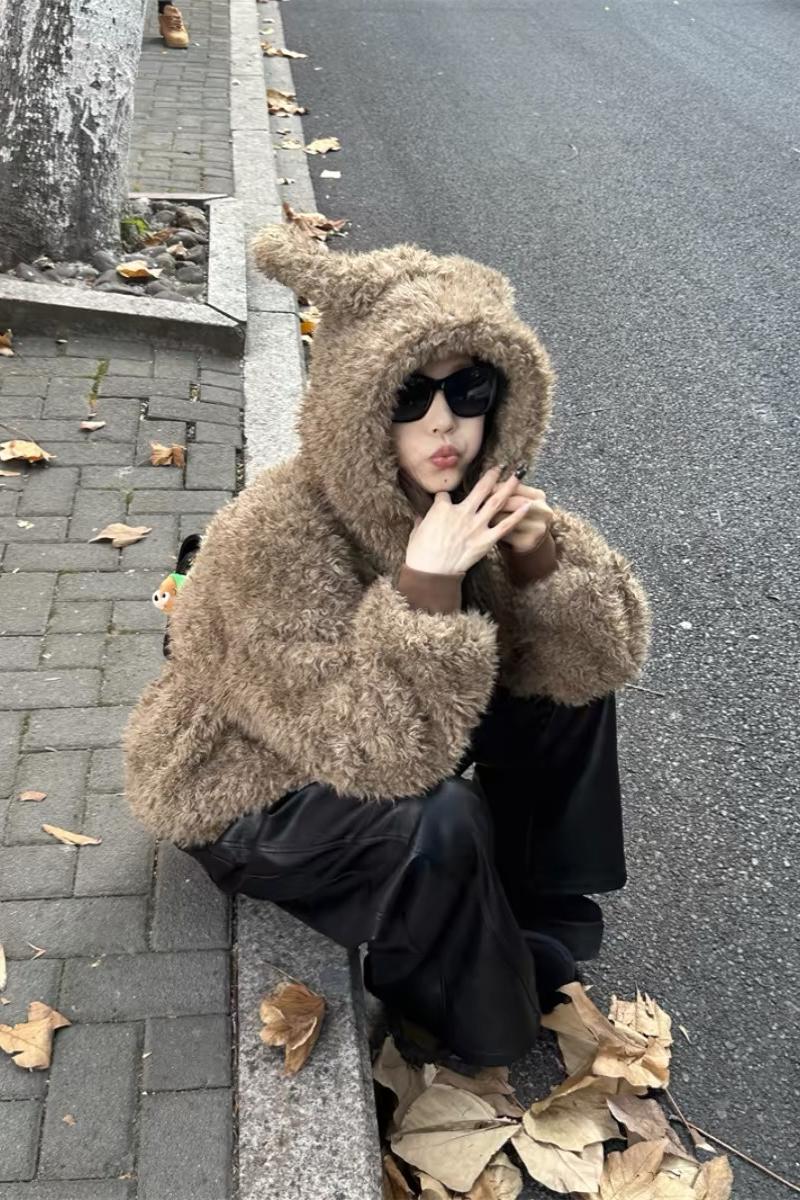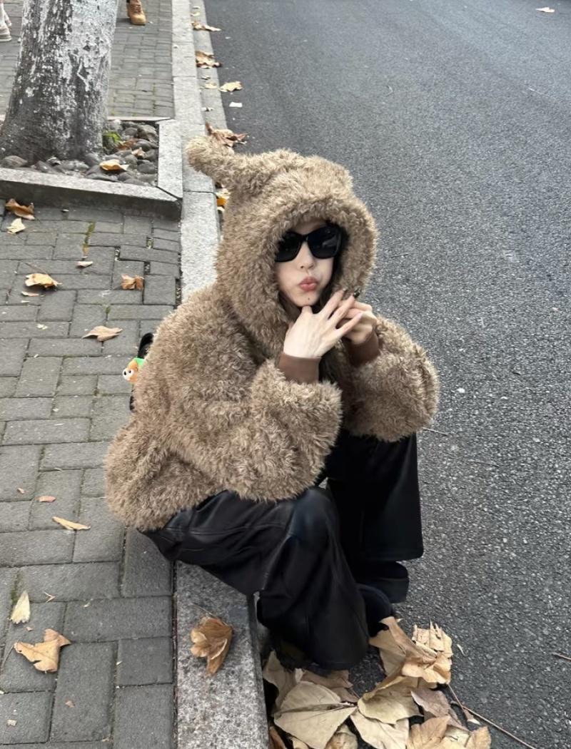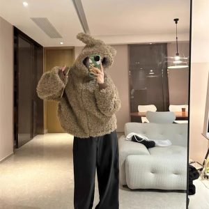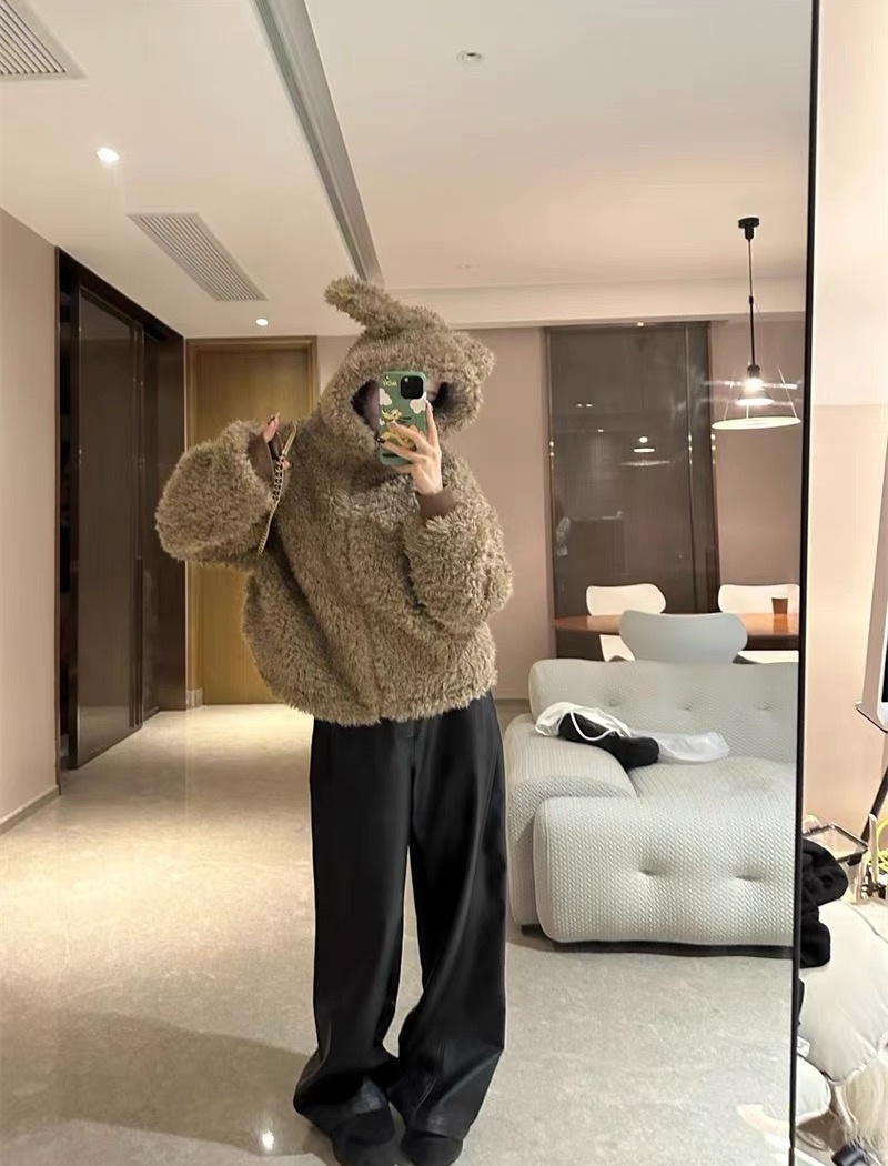 Hooded lazy long sleeve tops fluffy winter lovely coat