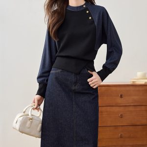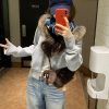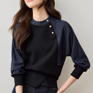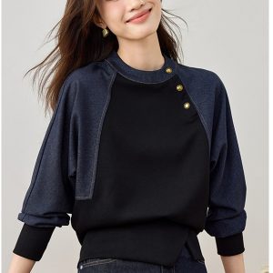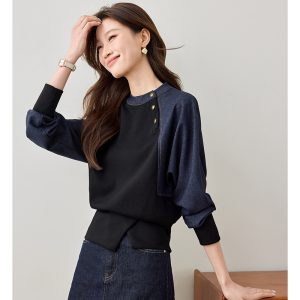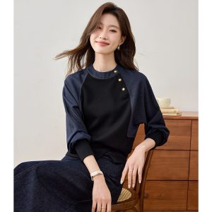 Korean style cstand collar tops retro Casual hoodie for women
