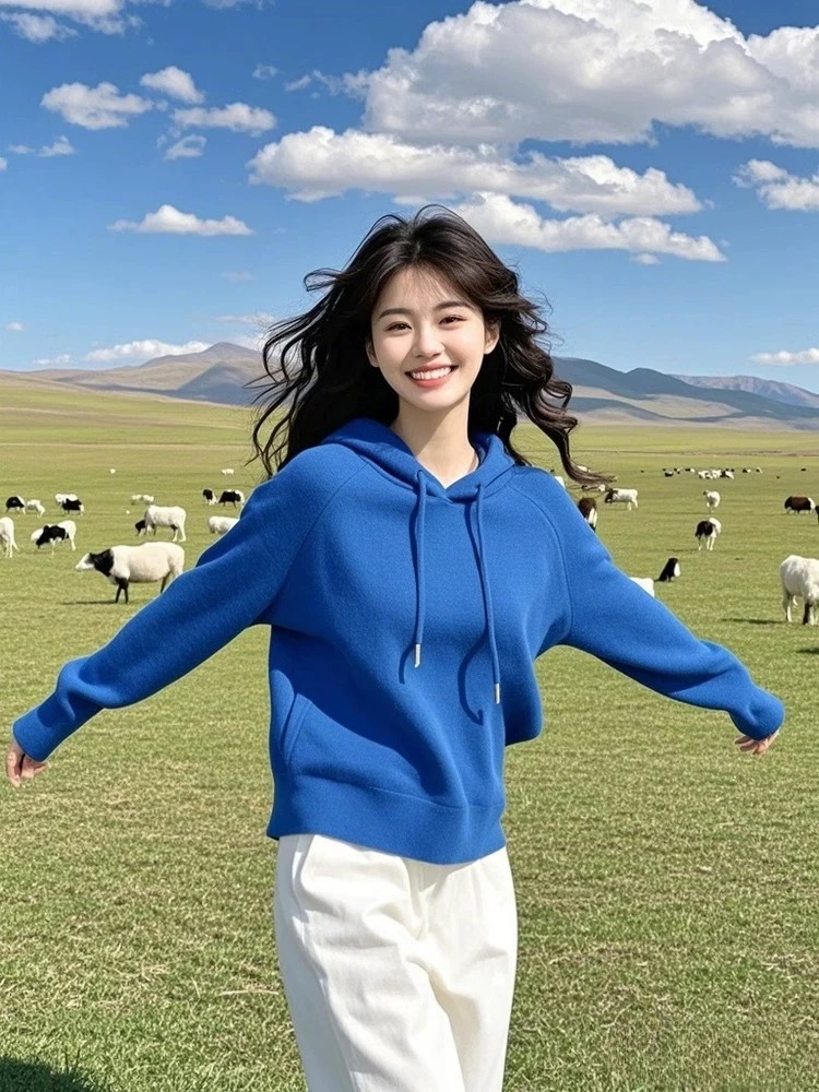 Long sleeve slim tops winter loose hoodie for women