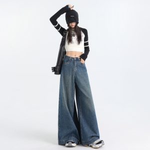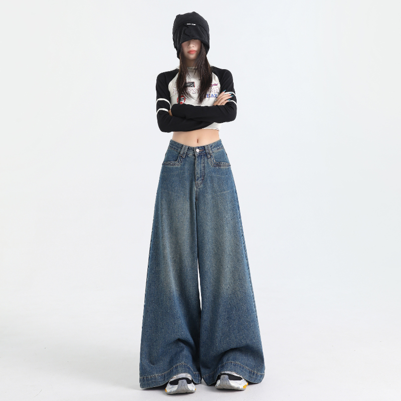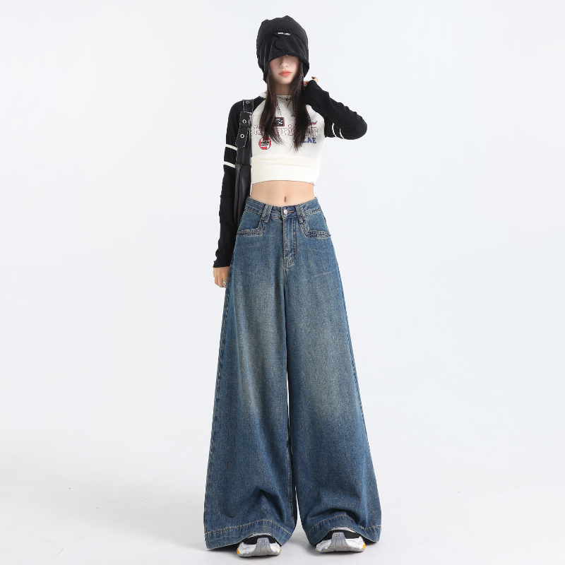 Loose big wide leg jeans slim long pants for women