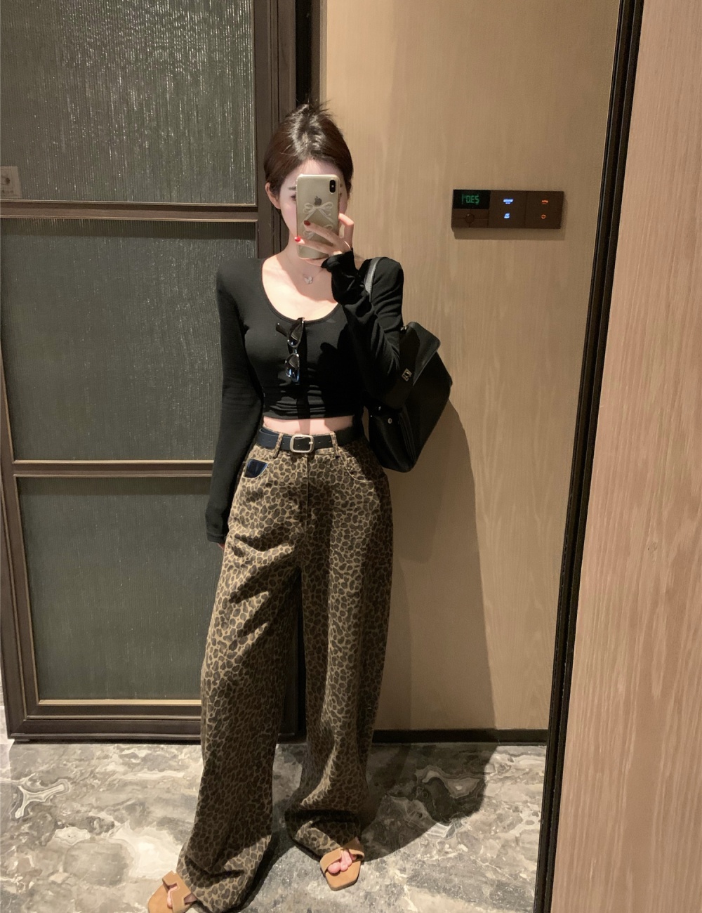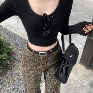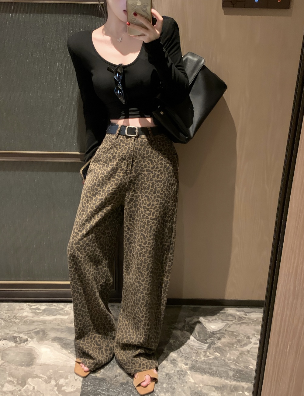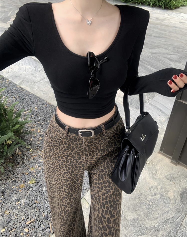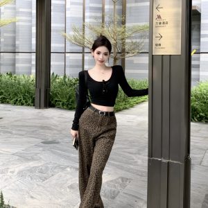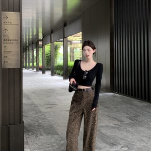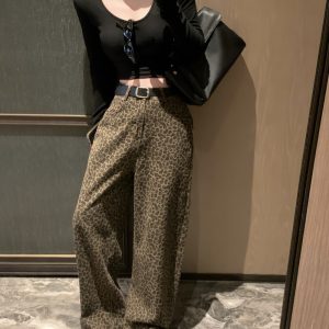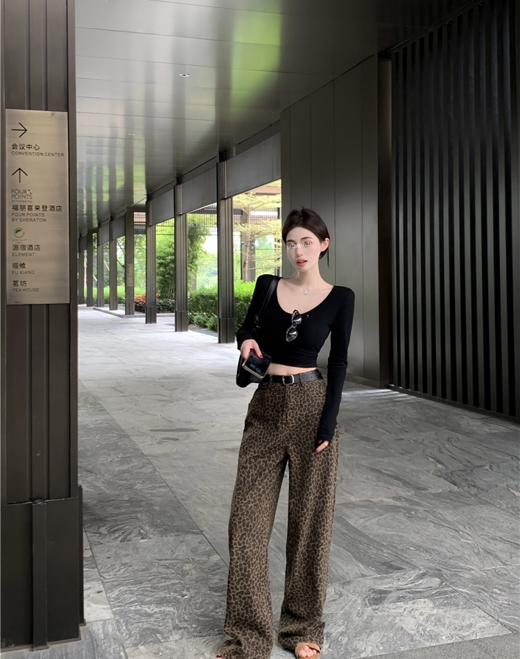 Mopping leopard casual pants wide leg long pants for women