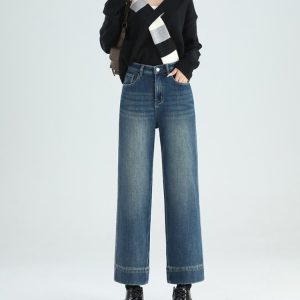 Nine tenths denim slim elasticity all-match pants