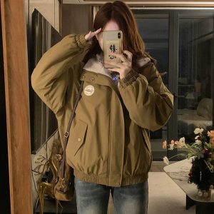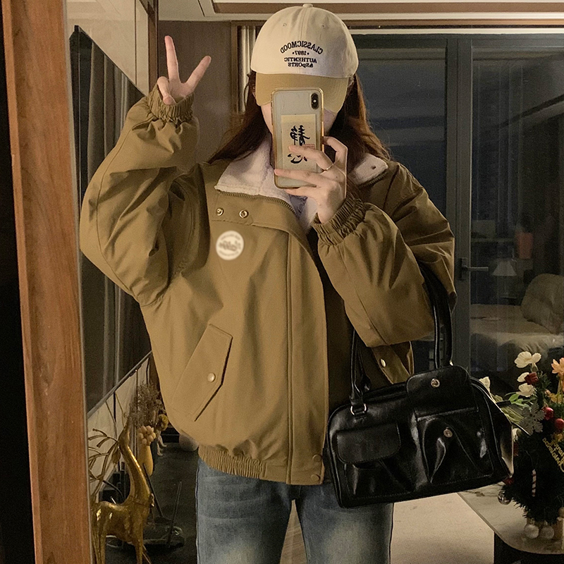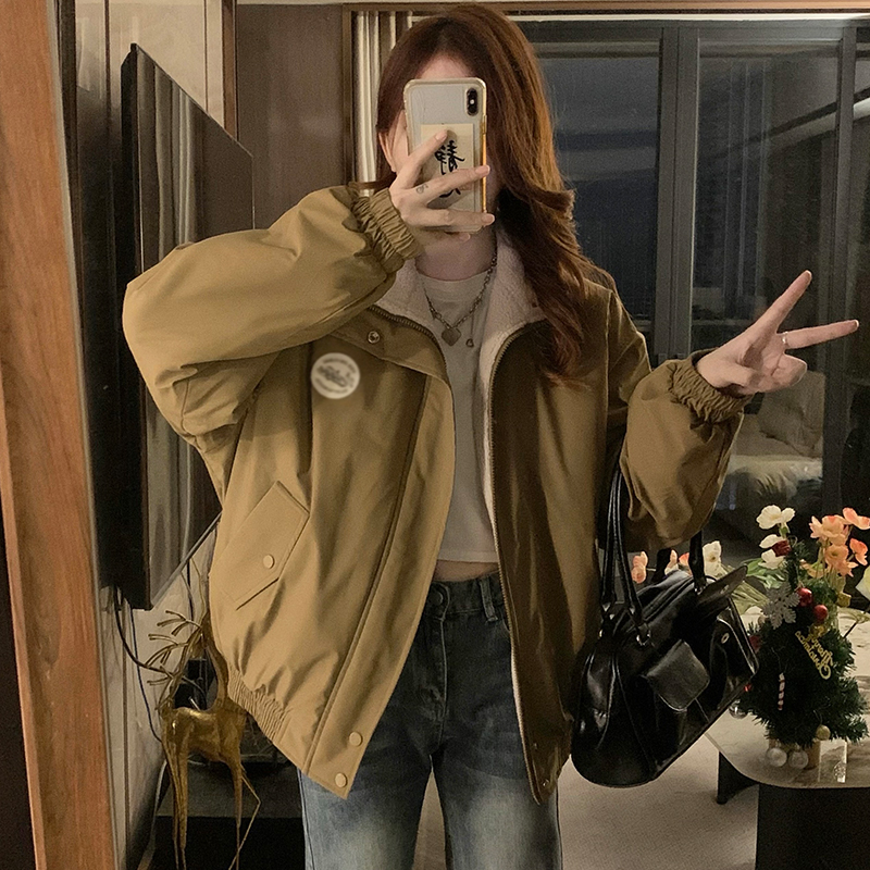 Plus velvet plush coat winter thermal tops for women