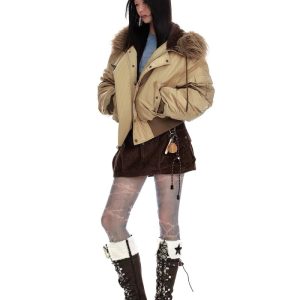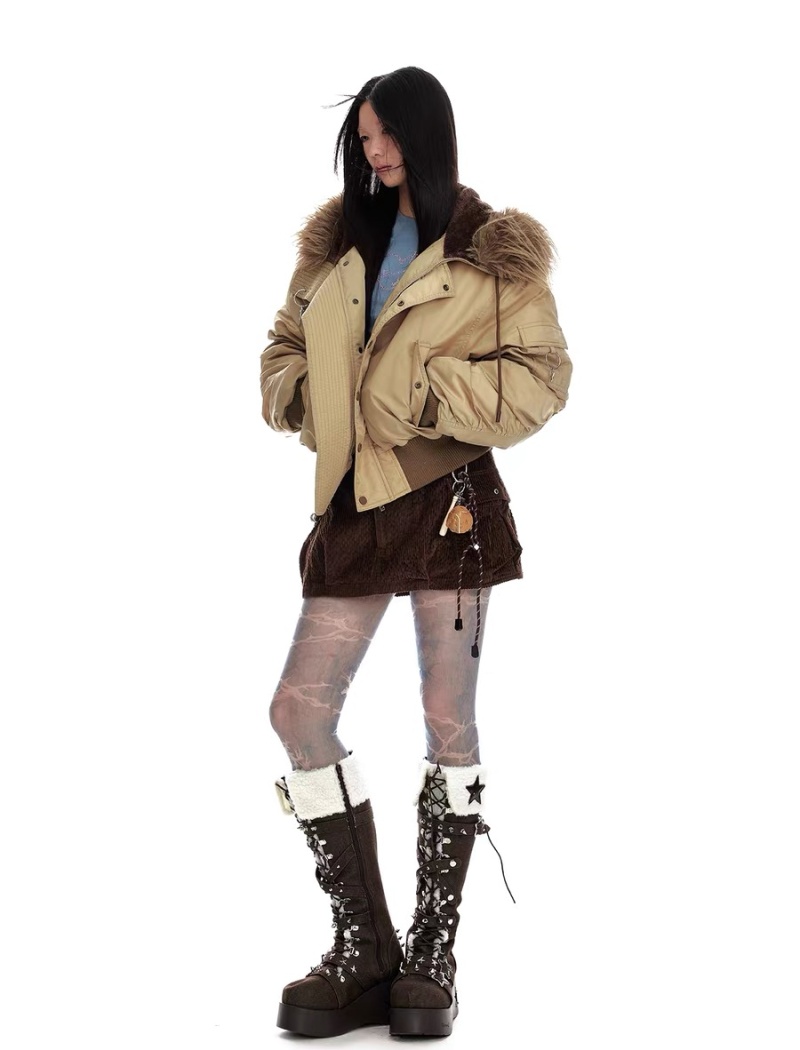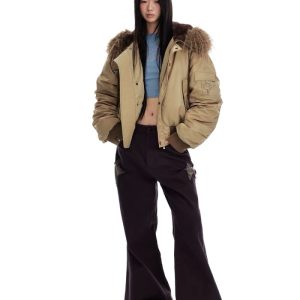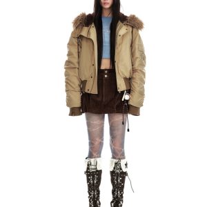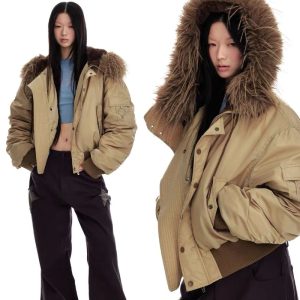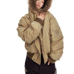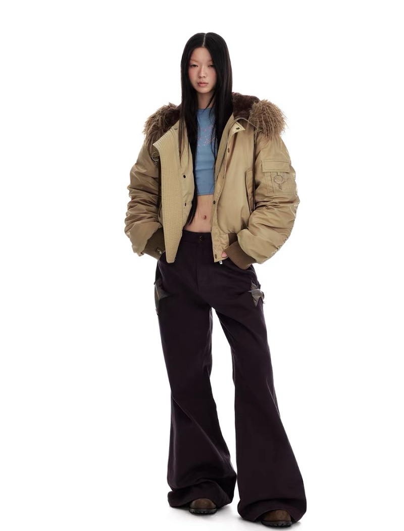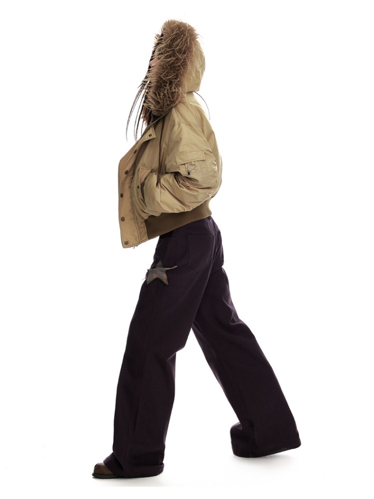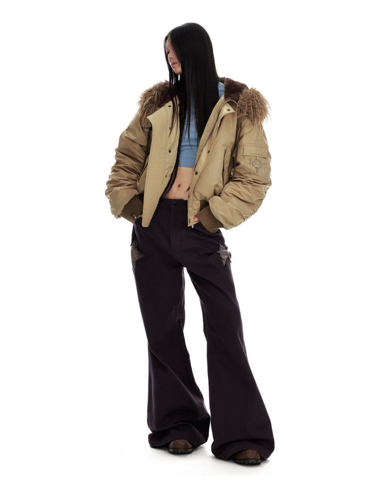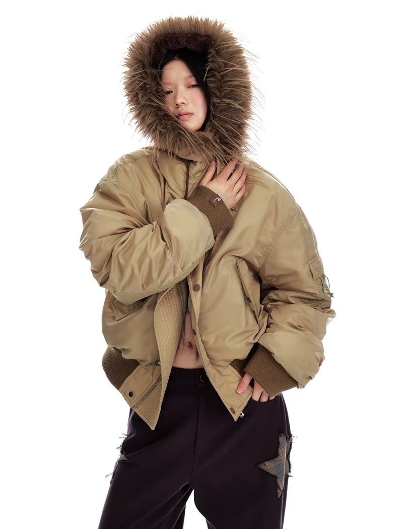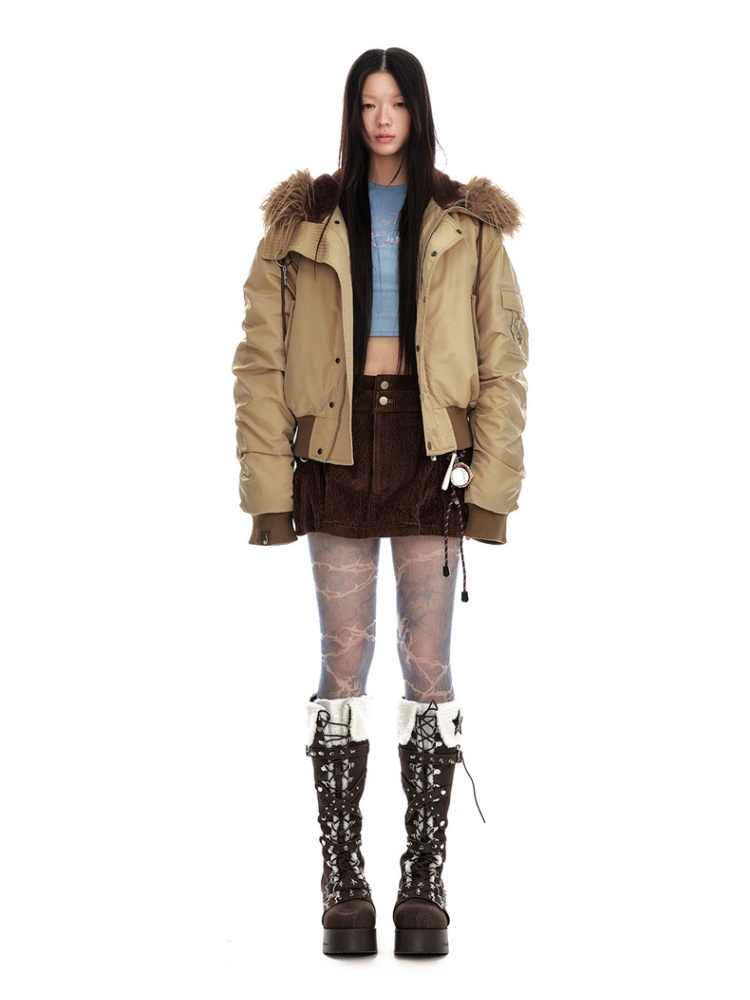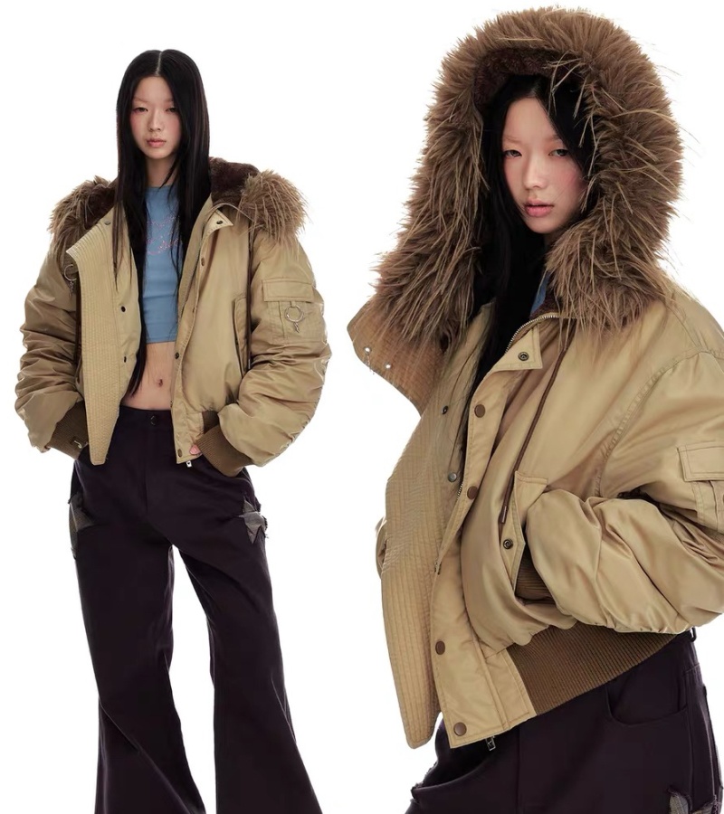 Thermal thick street down coat retro fur collar hooded jacket
