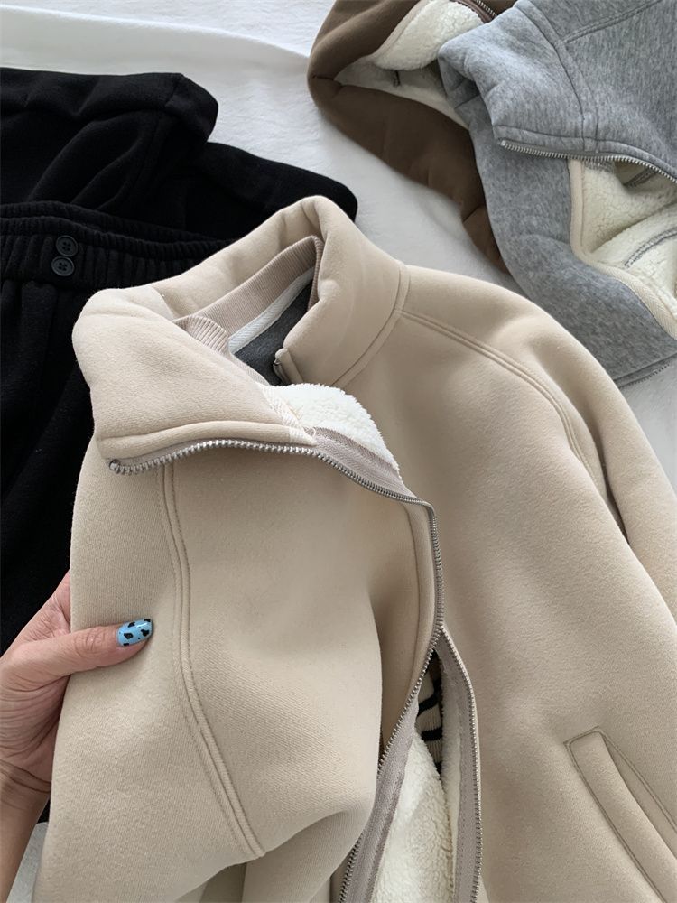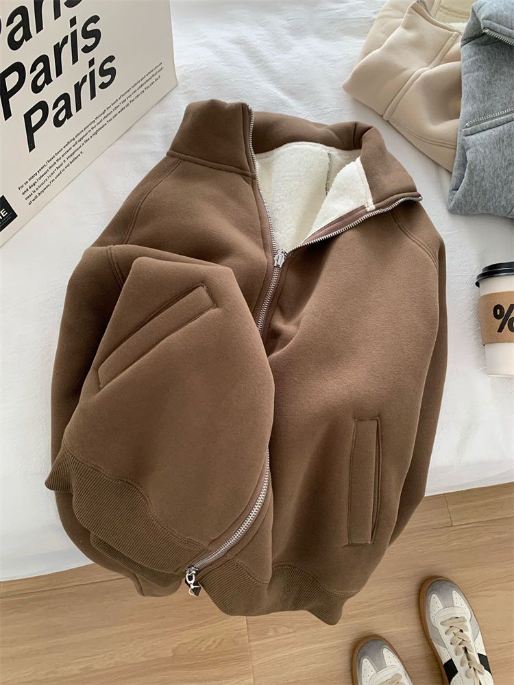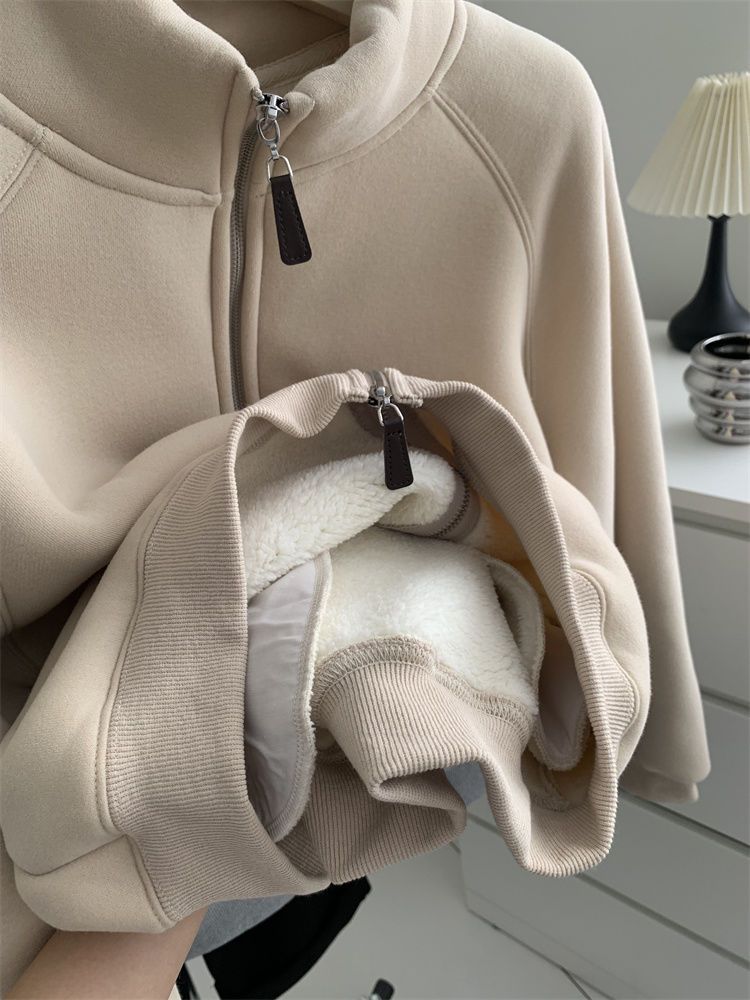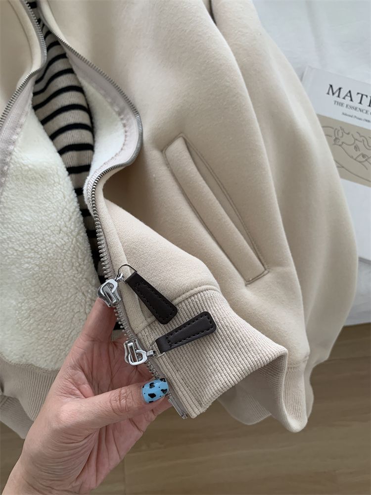 Zip thick all-match hoodie lamb fur winter cardigan for women