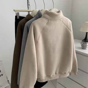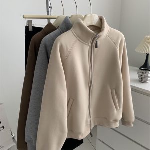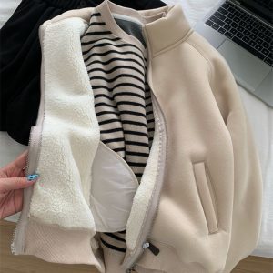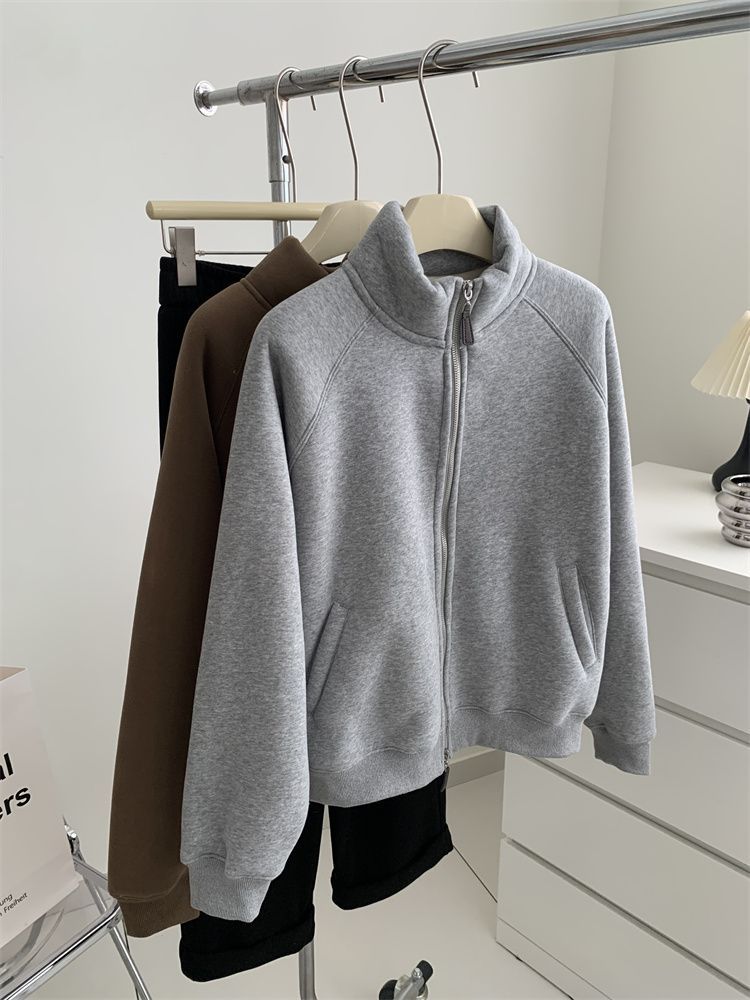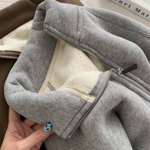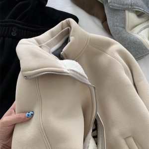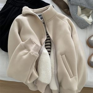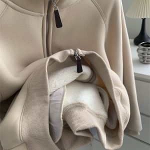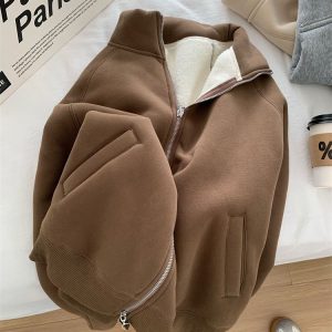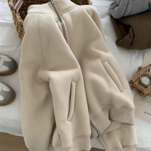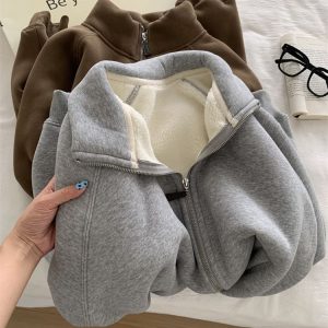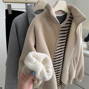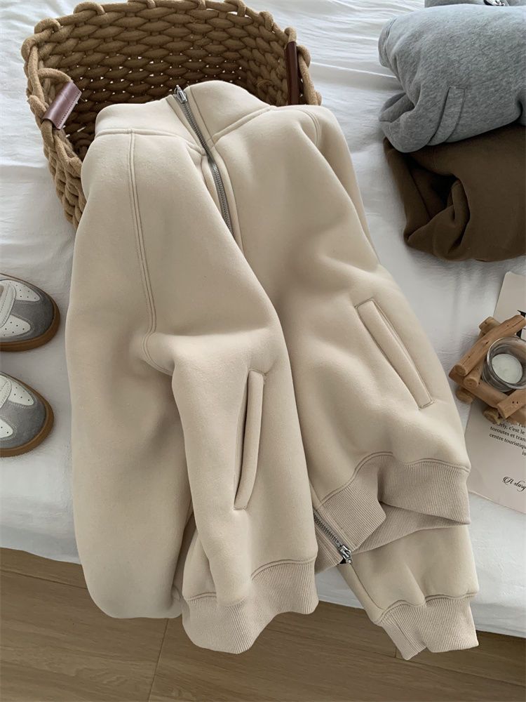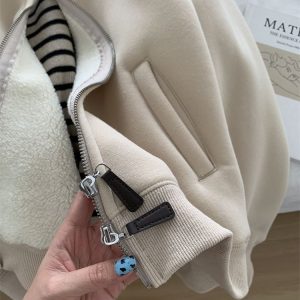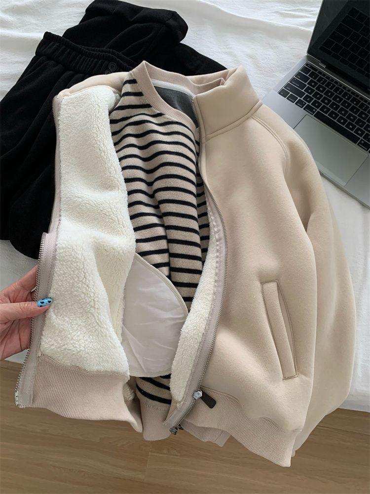 Zip thick all-match hoodie lamb fur winter cardigan for women