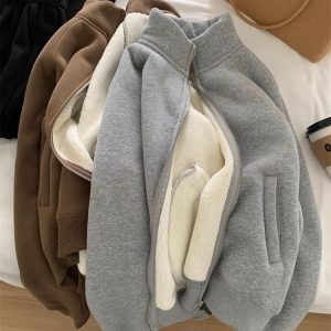 Zip thick all-match hoodie lamb fur winter cardigan for women